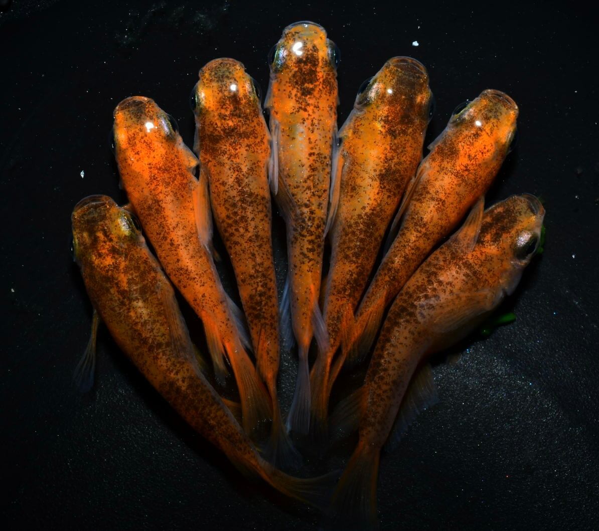 見る角度や光の加減により画像と実際のメダカが異なって見える事があります。
